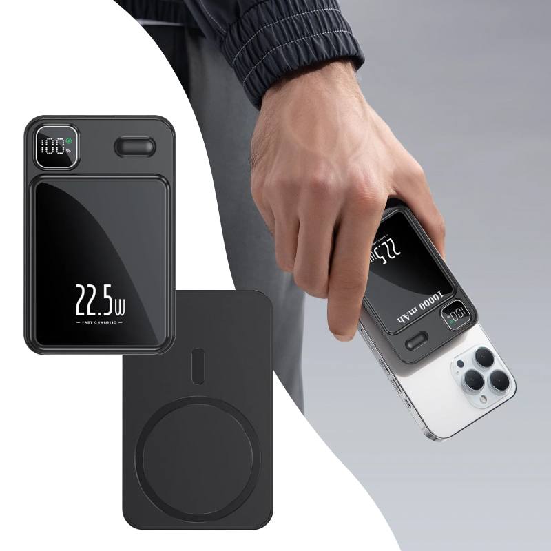 Мобільна зарядка Magnetic Power Bank 10000 mAh 2.5W дозволяє легко та швидко зарядити телефон без підключення кабелю до електромережі. Завдяки магніту телефон надійно кріпиться до повербанка, що забезпечує додаткову безпеку його використання.