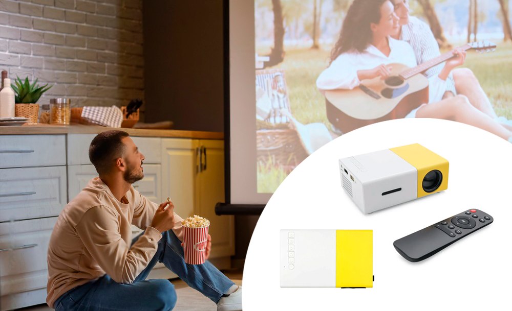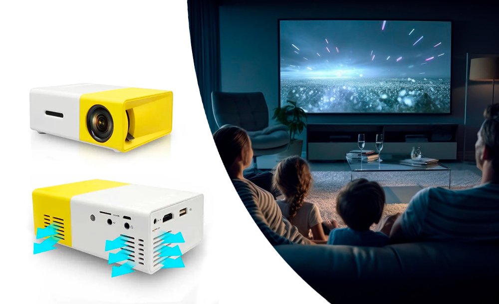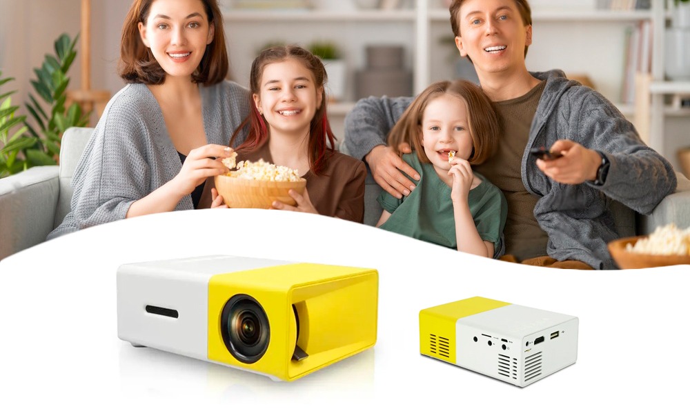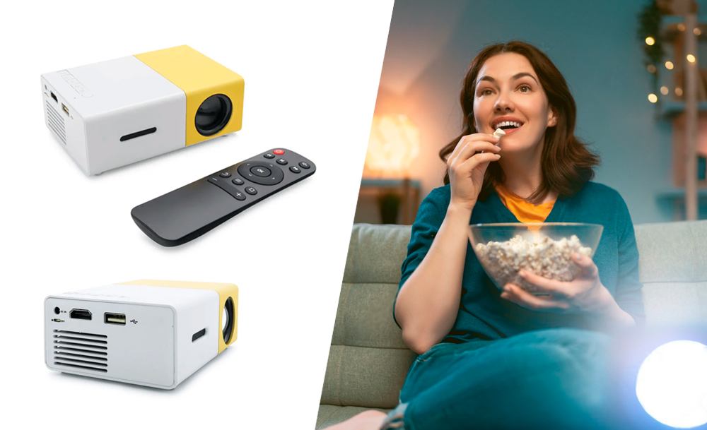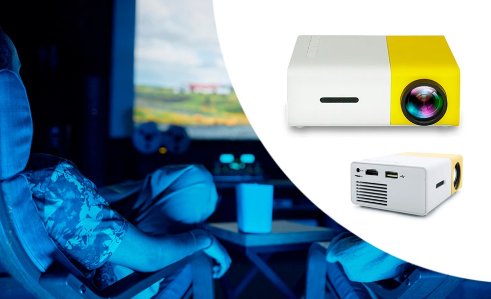 Портативний LED-проектор YG300 це зручний пристрій для кінотеатру в домашніх умовах. Міні-проектор забезпечує яскраве та плавне зображення.