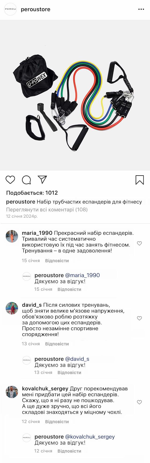 Набір трубчастих еспандерів для фітнесу складається із п’яти високоякісних латексних джгутів (довжиною 110 см); двох ручок із піни; двох бретельок, одного дверного анкера. Набір має дуже широке застосування, посилюючи ефективність кожного тренування. Зокрема, ідеально підходить для нарощування м’язової маси, схуднення, а також для спортивних розтяжок після силових навантажень тощо.