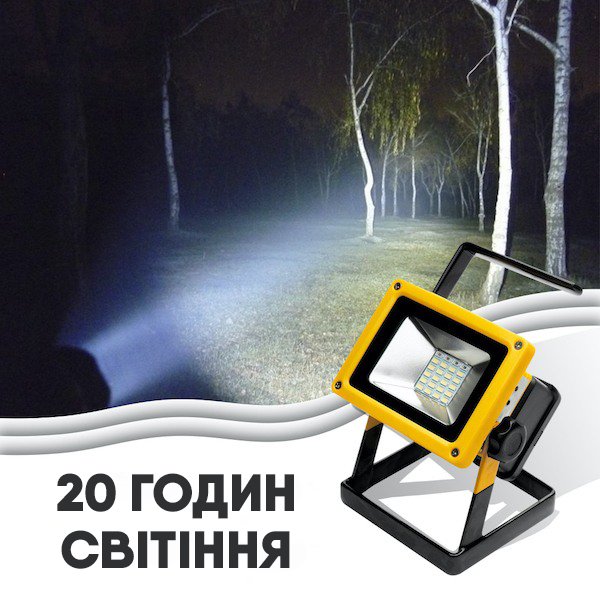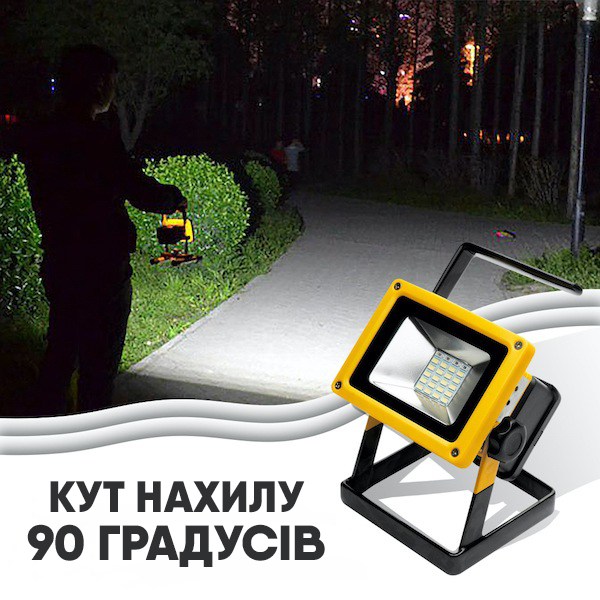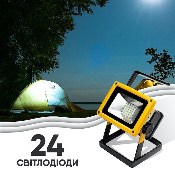 Ліхтар потужністю 30W забезпечує світловий потік в 2400 лм. Це можна порівняти з лампою розжарювання в 300 Ватт. У прожекторі застосована світлодіодна LED матриця високої щільності випромінювання. Розсіювач створює кут освітлення 120°. Працює від перезаряджувальних батарей 18650.