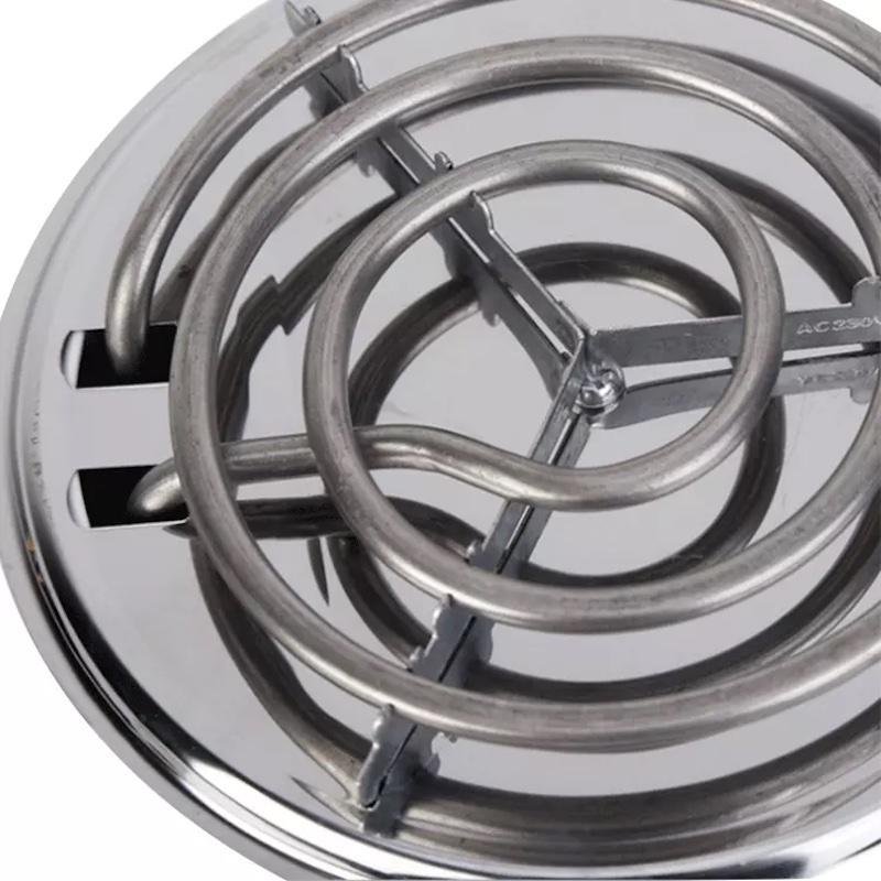 Плита оснащена спіральним нагрівальним елементом, який швидко набуває потрібної температури і потужності; Перемикання режимів регулюється поворотним тумблером. На бічній панелі є індикатор, що служить оповіщенням підключення до мережі, а також нагадуванням про необхідність вимкнення приладу.