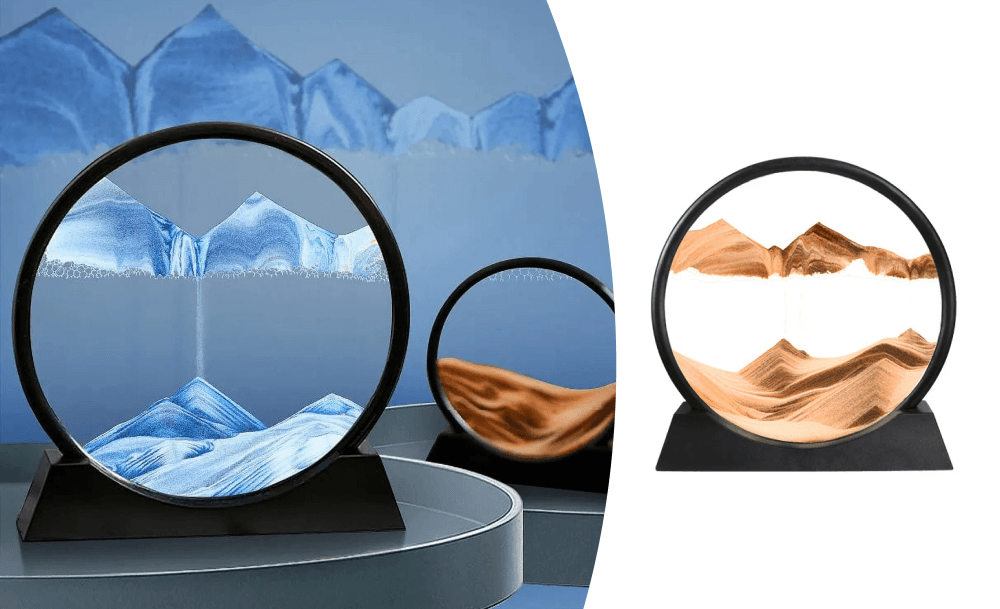 Унікальний дизайн, що обертається на 360 °: 3D-лампа з пісочного скла може обертатися на 360 ° і змінювати бік у будь-який час. Весь пристрій для видалення піску перебуває під вашим контролем. Щоразу, коли ніжний хиткий пісок перевертається, картина змінюється.
