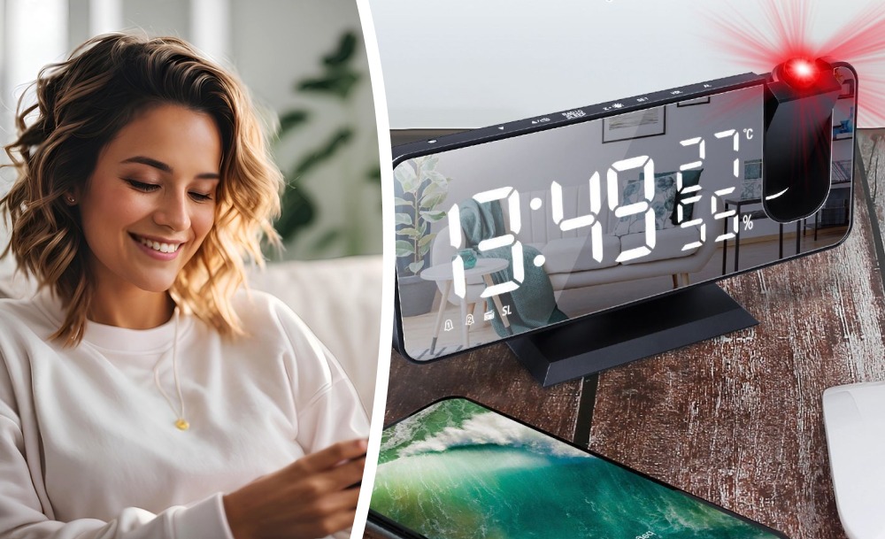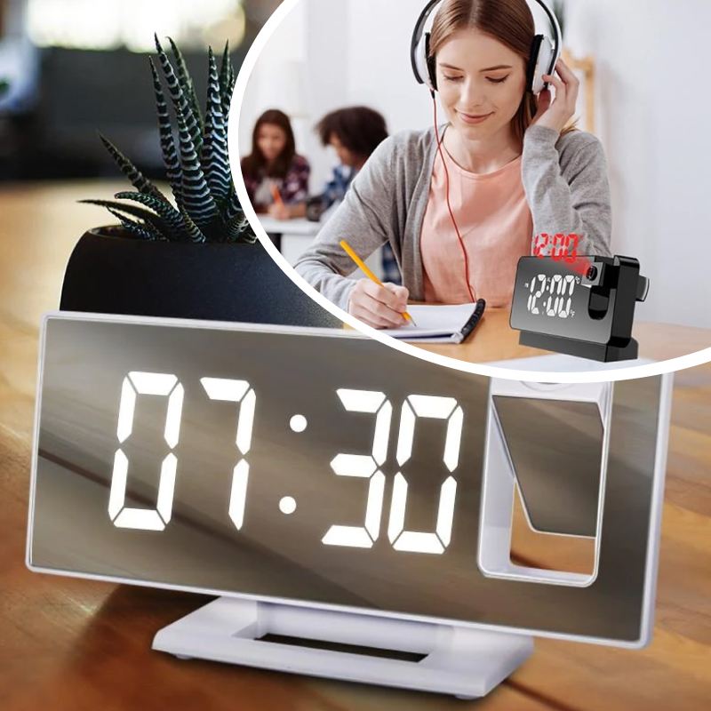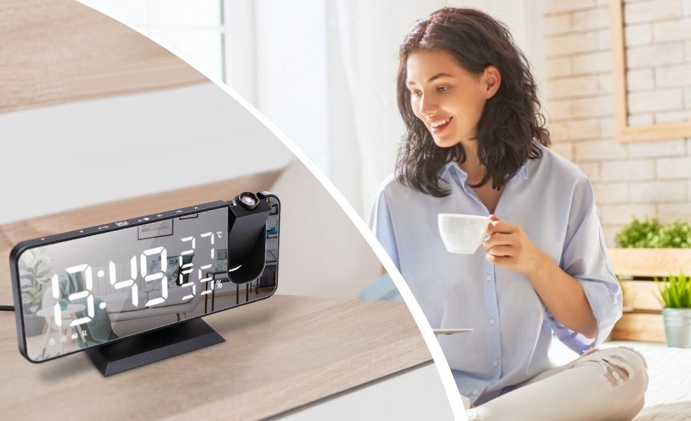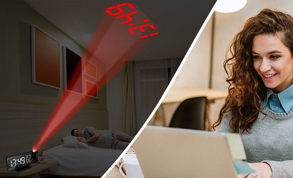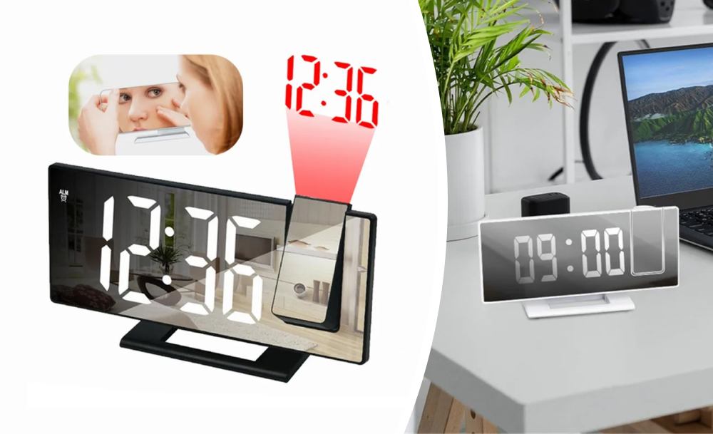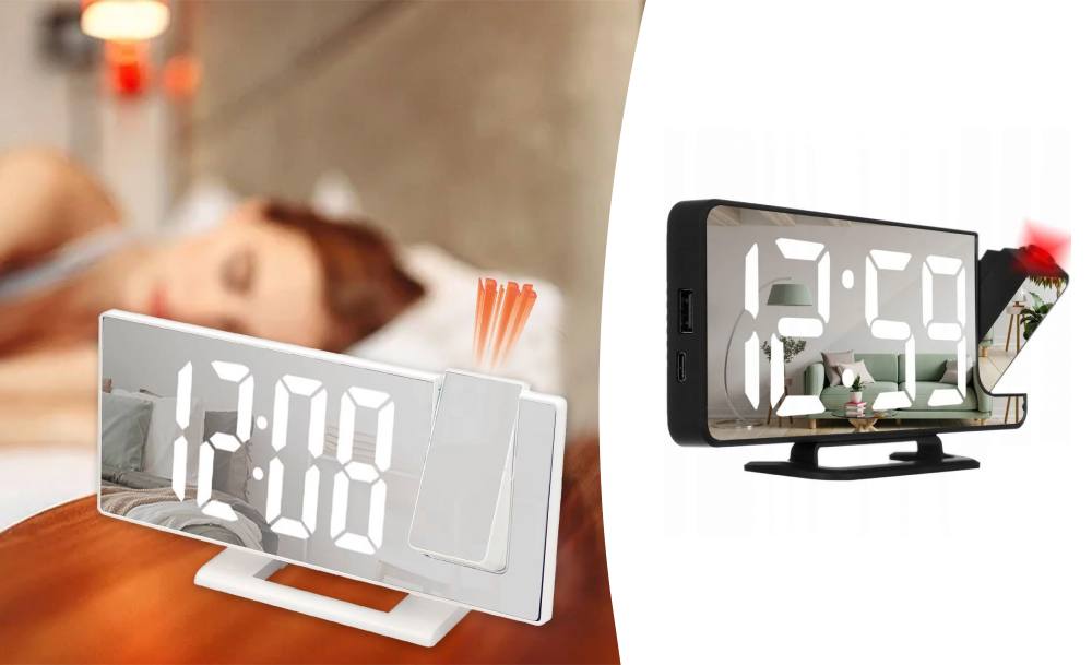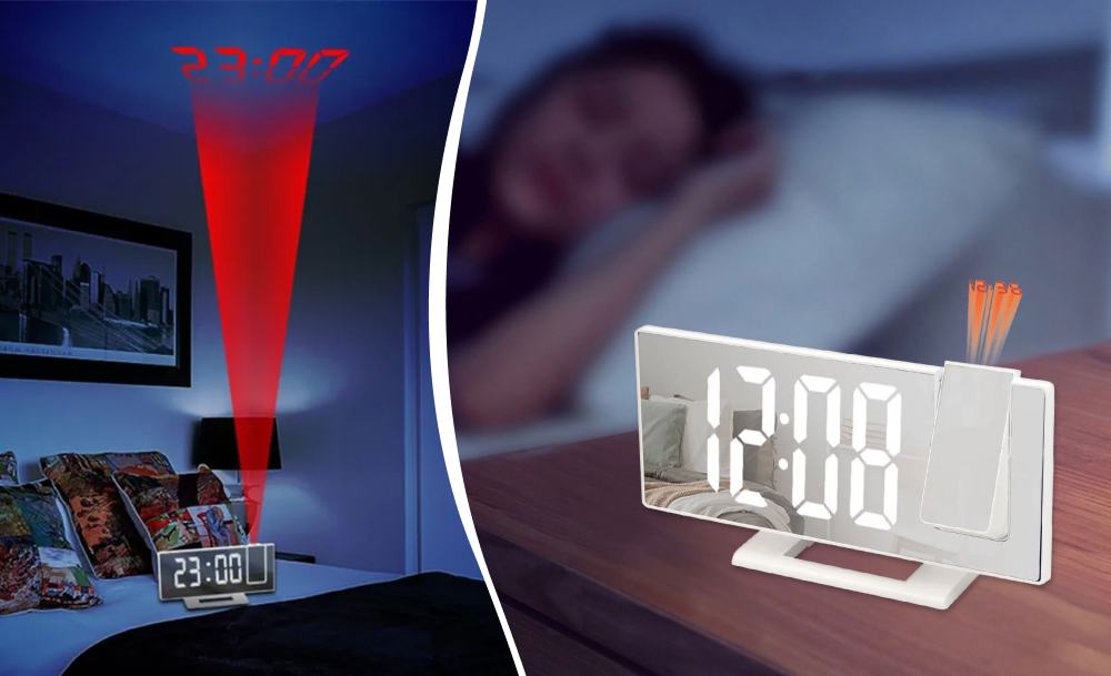 Проекційний годинник із будильником дозволяє не тільки змінити кут нахилу проекції, переводячи проекцію зі стелі на стіну, але також змінити орієнтацію проекції в площині. Тепер немає потреби крутити годинник на столі, щоб домогтися правильної орієнтації цифр.