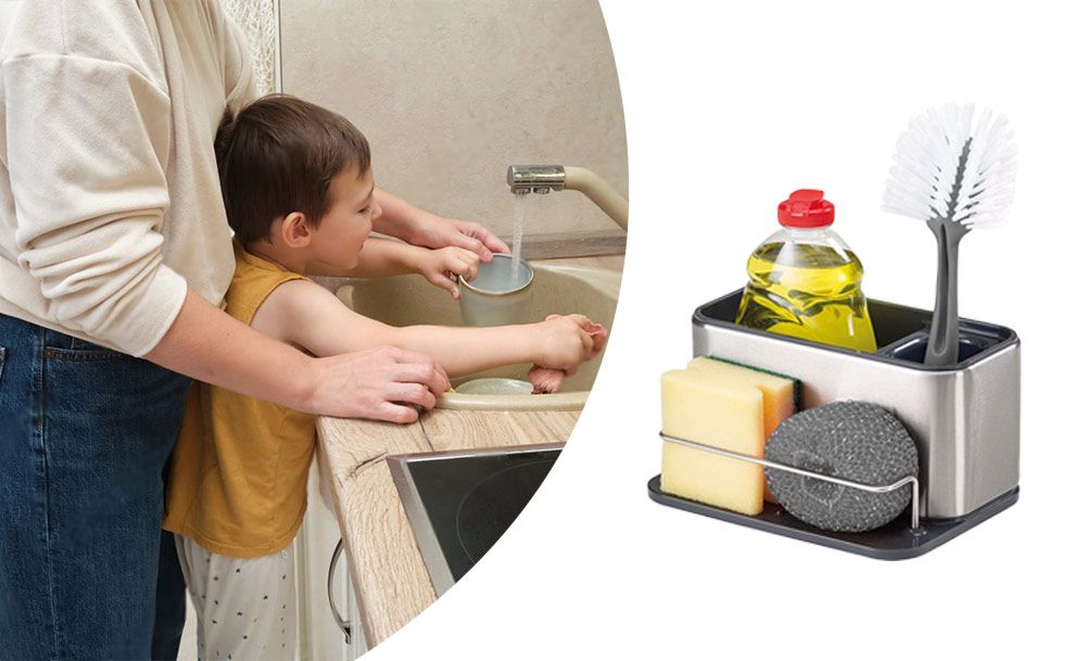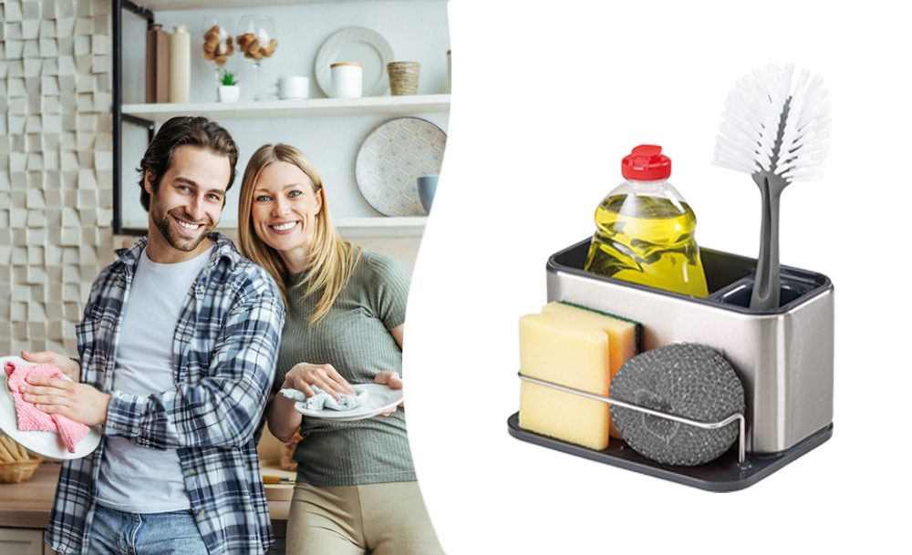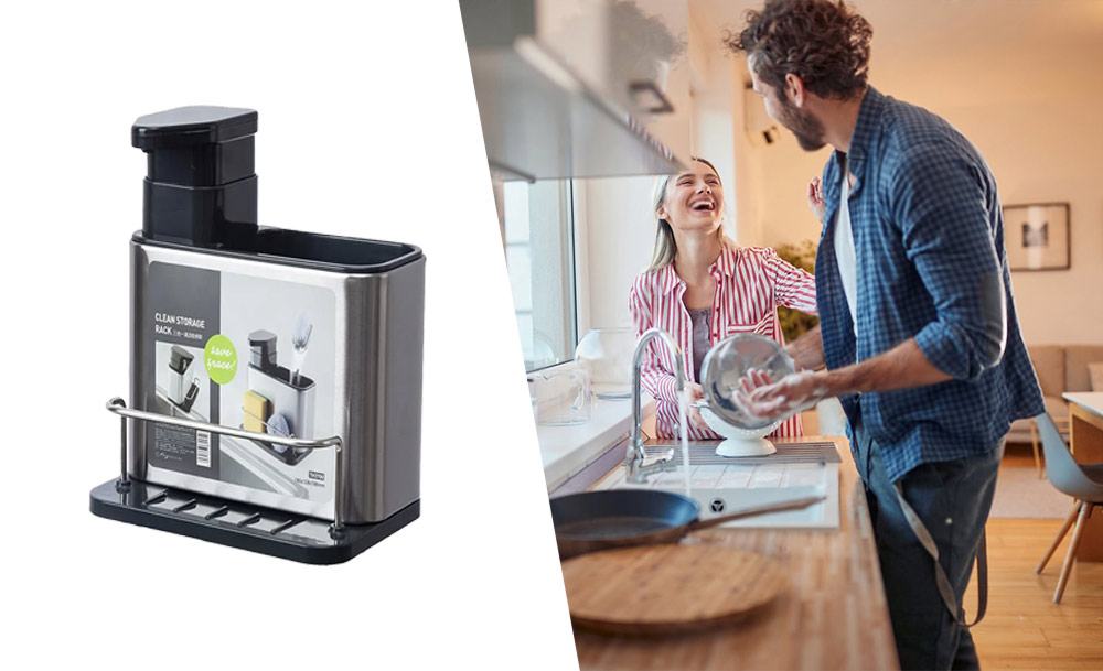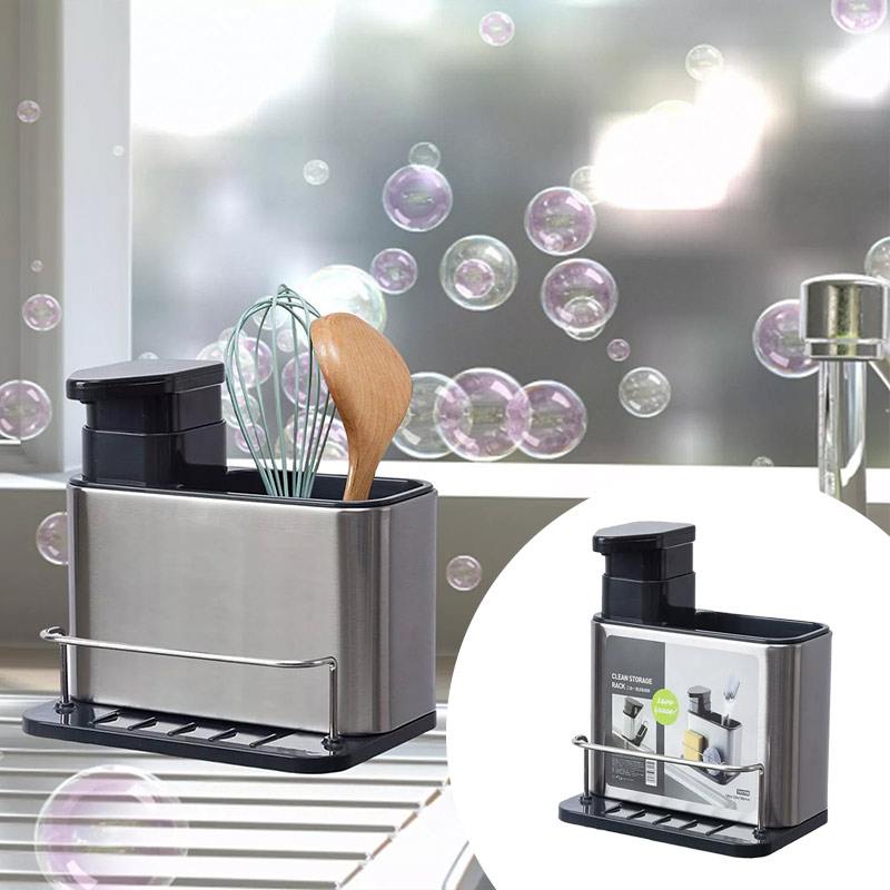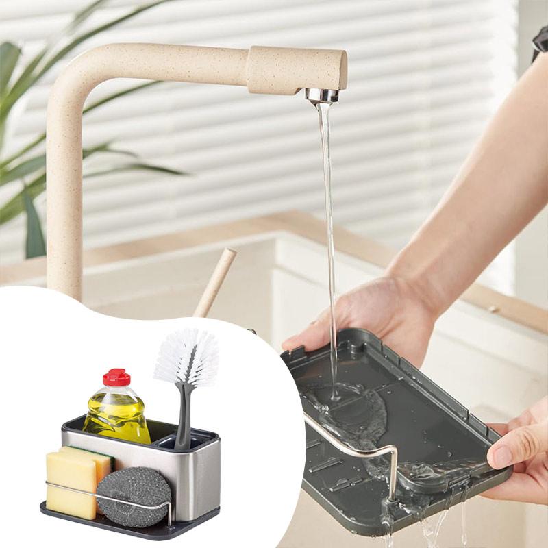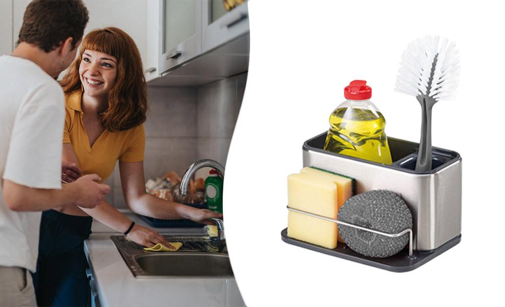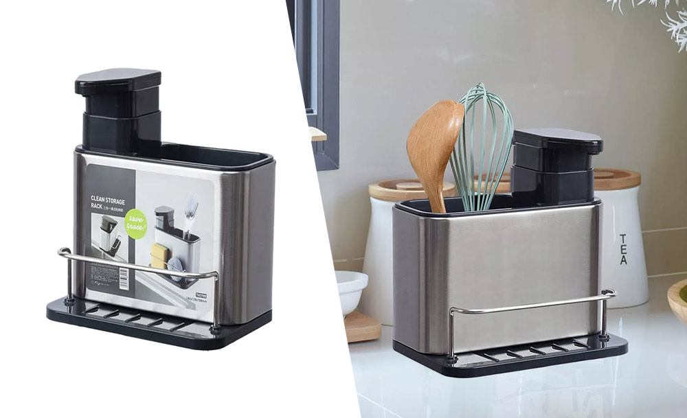 Практичний органайзер на кухню HB-19 із вбудованим диспенсером для миючого засобу забезпечує зручність та функціональність. Спеціальний тримач для губок з дозатором рідкого мила та миючого засобу робить процес миття посуду ще ефективнішим.