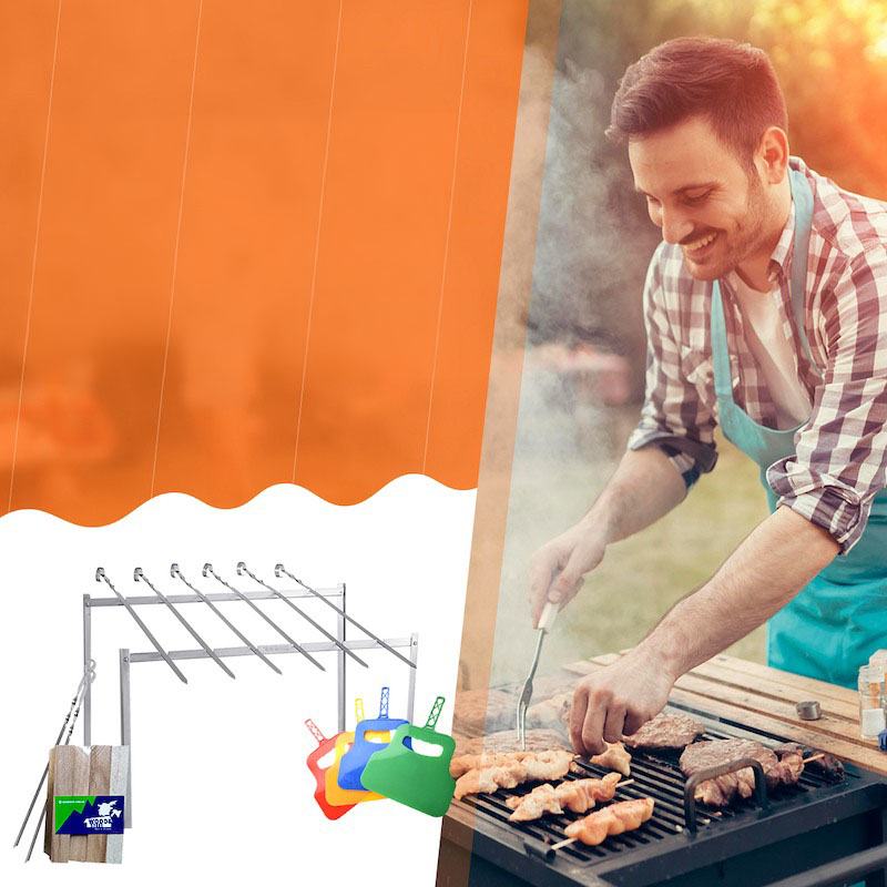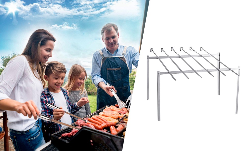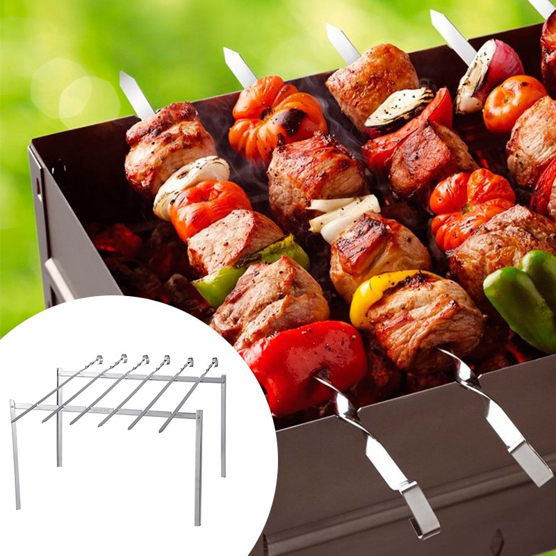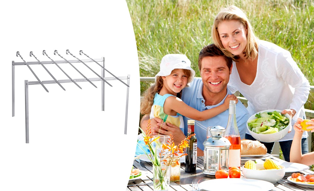 Підставка для шампурів – це чудовий вибір для відпочинку на природі. За допомогою усіх його складових комплекту можна легко та швидко приготувати на відкритому вогні будь-яке м’ясо чи рибу, запекти овочі або ковбаски. Шампур – незамінний помічник при смаженні шашликів.