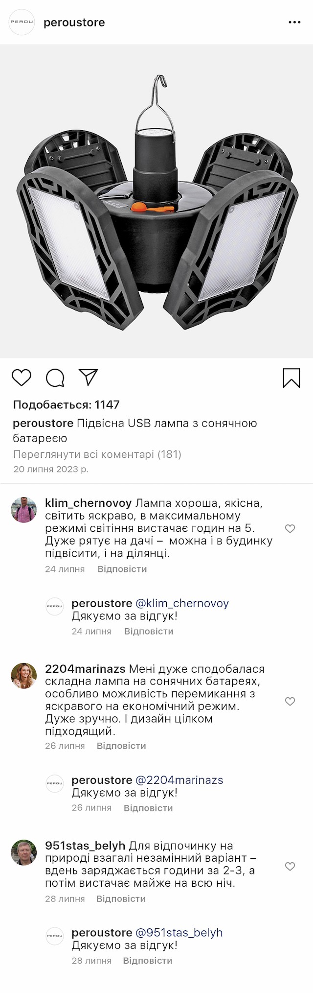 Підвісна USB лампа з сонячною батареєю незамінна у темний час доби; її можна використовувати в будь-якому приміщенні, на вулиці, у дворі, на природі або в наметі, підвісивши за вбудований гак. Трьохстулкова складана акумуляторна лампа має високий ступінь яскравості та 4 режими світіння.