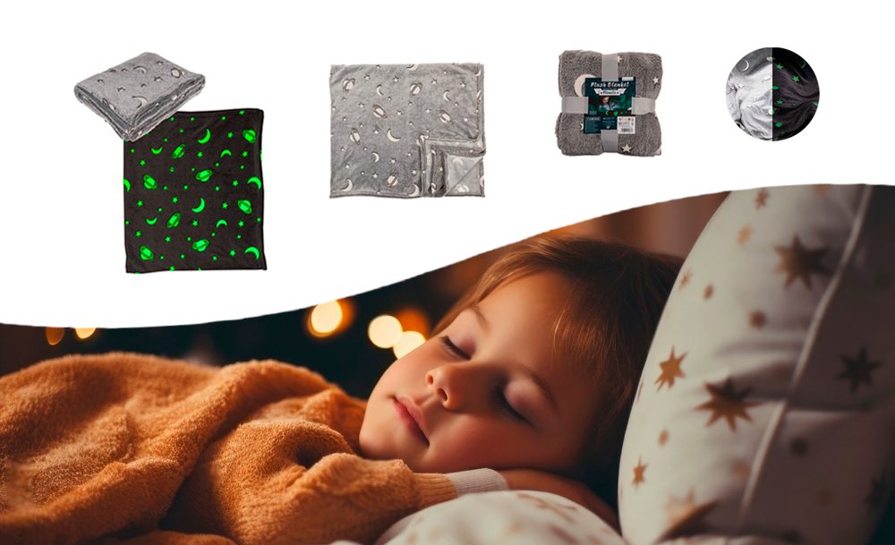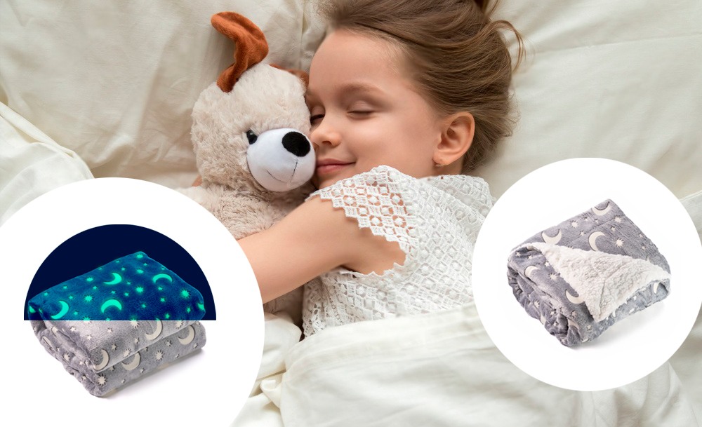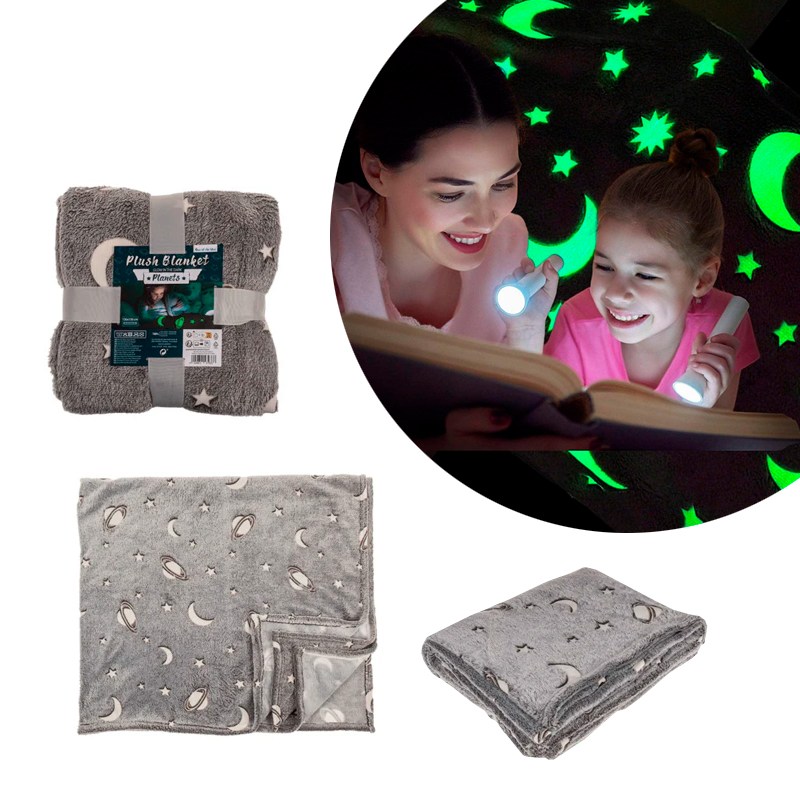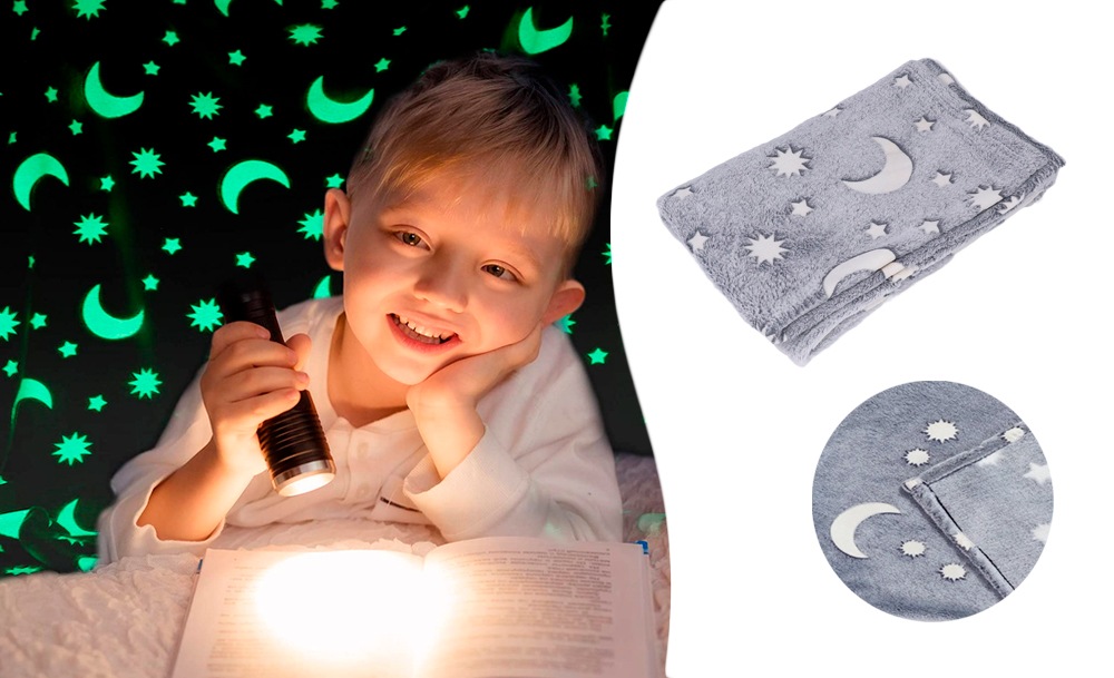 М’який і теплий плед Magic Blanket підійде і дорослим, і дітям, дасть змогу втілити космічні фантазії вашого малюка і перетворити процес засинання на захопливу пригоду. Плед, що світиться в темряві, стане чудовим подарунком і чудовою прикрасою для будь-якої дитячої кімнати або спальні.