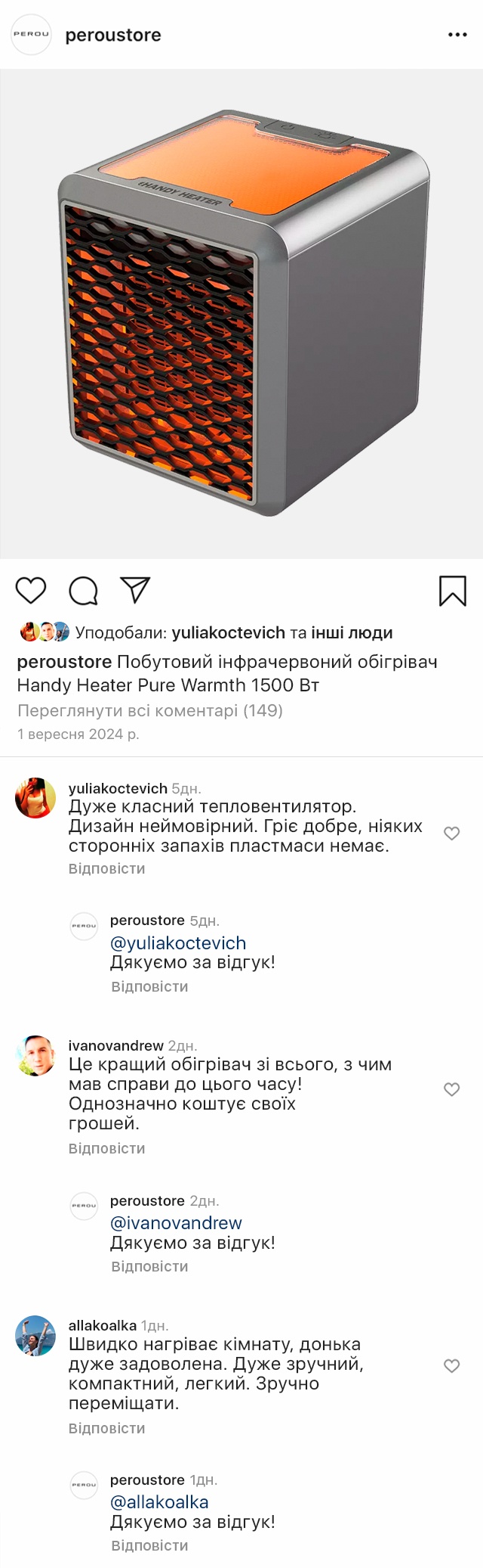 Потужність обігрівача 1500 Вт цього достатньо, щоб швидко нагріти невелику зону навколо людини і створити комфортний мікроклімат.
