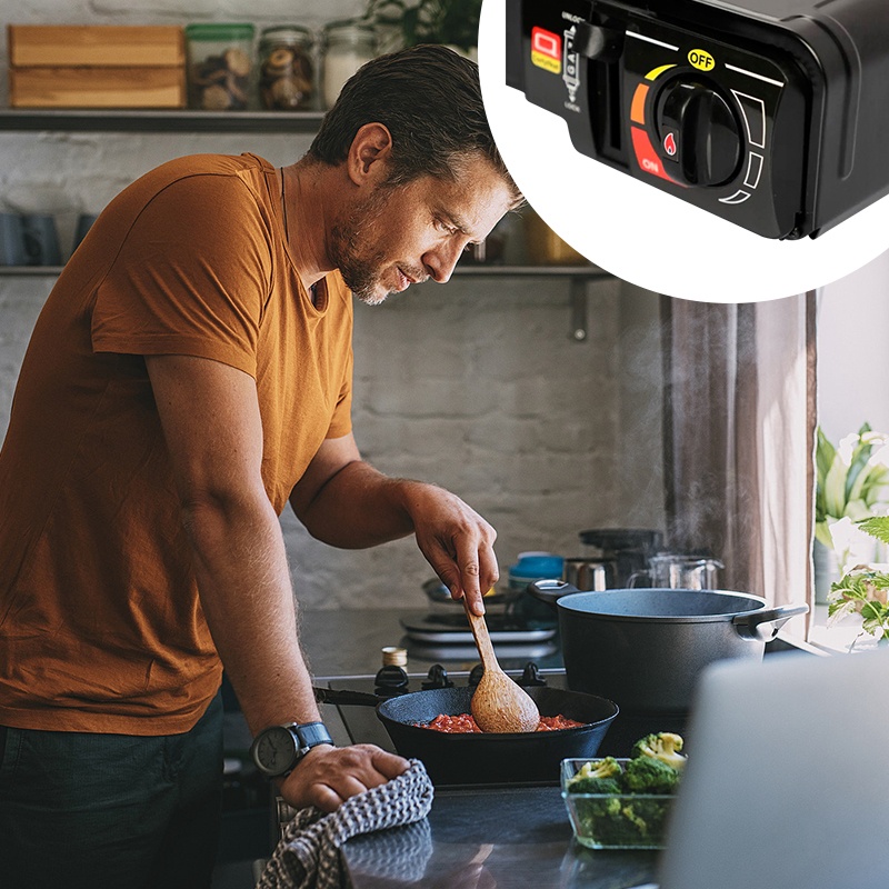 Вона досить потужна, щоб розігрівати чи готувати їжу, до того ж має вітрозахисний екран, який забезпечує економну витрату газової суміші. Плиту можна підключити до цангового або звичайного газового побутового балона, вона добре працює навіть при низькому тиску газу.