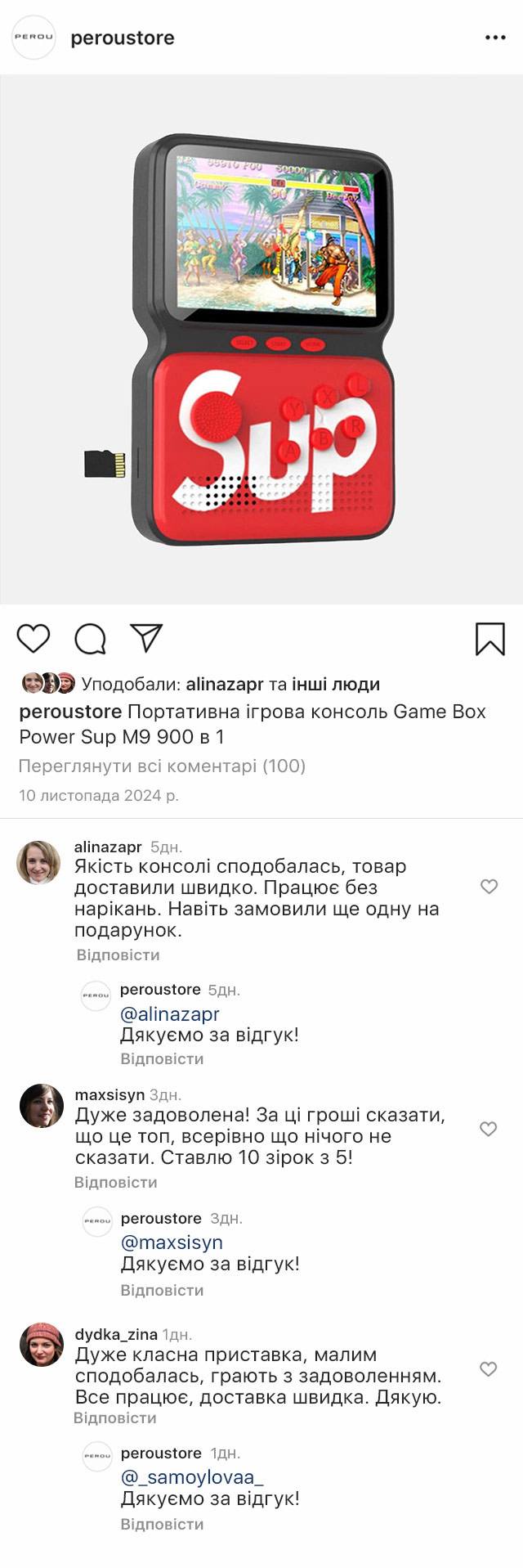 Ігрова консоль Game Box Power Sup M9 – портативна приставка для дітей та дорослих, що вміщає понад 900 класичних ігор. Відмінний спосіб забезпечити дитині веселе та цікаве заняття, а також провести час разом із нею. Ергономічний дизайн, простота використання, можливість брати із собою у подорожі – продумано все до дрібниць для комфортної експлуатації.