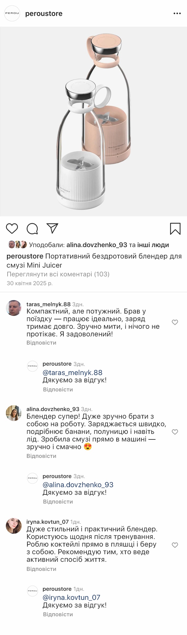 Потужний мотор з легкістю справляється з фруктами, овочами, льодом і навіть горіхами. Просто покладіть інгредієнти, натисніть кнопку — і вже за кілька секунд у вас буде свіжий смузі, коктейль або сік. MINI JUICER — ваша щоденна порція вітамінів та енергії в зручному форматі.