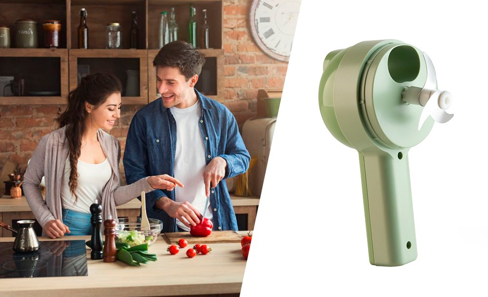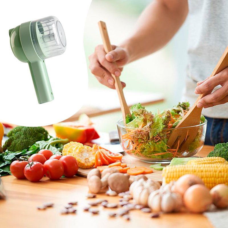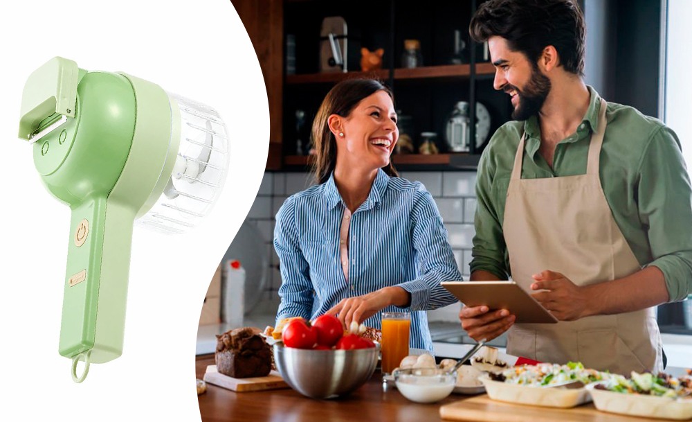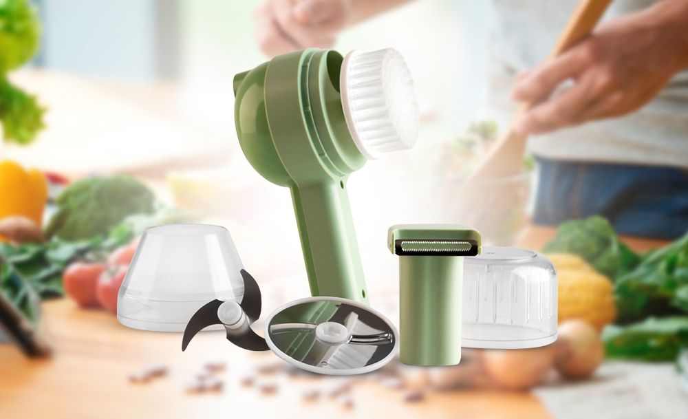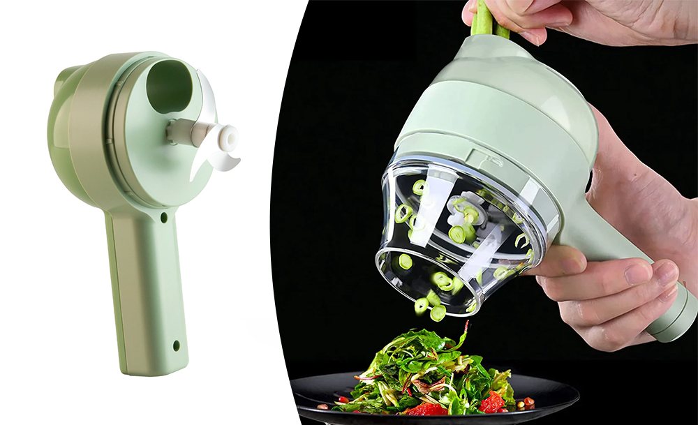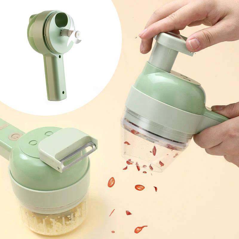 Універсальний та компактний портативний кухонний прилад 4 в 1 дозволить вам швидко та легко нарізати овочі та зелень, подрібнити м’ясо та фрукти, а також очистити дощечку від залишків продуктів. Більше не потрібно купувати багато ножів та м’ясорубок, адже всі необхідні функції є в універсальному міні блендері. Крім того, всі насадки легко миються водою, що заощаджує час та сили під час прибирання. Чоппер ідеально впишеться у вашу кухню і перетворить кожну страву на справжній витвір мистецтва.