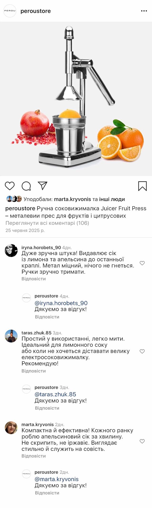 Цей прес ідеально підходить для приготування натуральних соків, коктейлів або заготовок на зиму. Легкий у догляді і компактний, він займе мінімум місця на кухні. Насолоджуйтеся свіжістю і користю натуральних фруктів щодня!