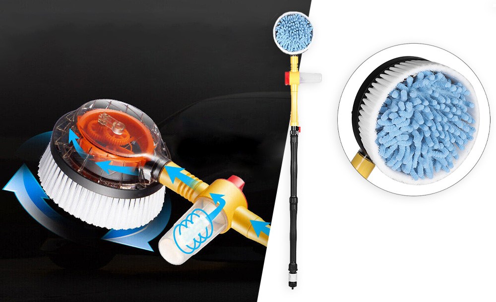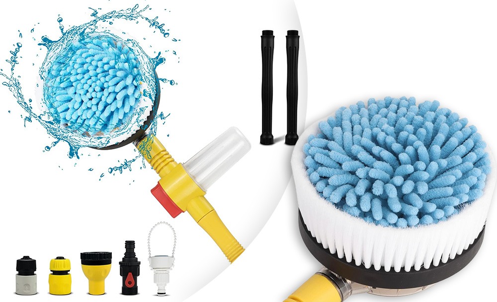 Щітка з насадкою для шланга Water Blast перетворює будь-який шланг на очищувач високого тиску. За допомогою насадки ви ефективно і за короткий проміжок часу очистите автомобіль, терасу, вікна, басейн та інші об’єкти. Зручна щітка, що обертається, має гнучкі щетинки і м’яку насадку з мікроволокна для ефективного і ретельного очищення.