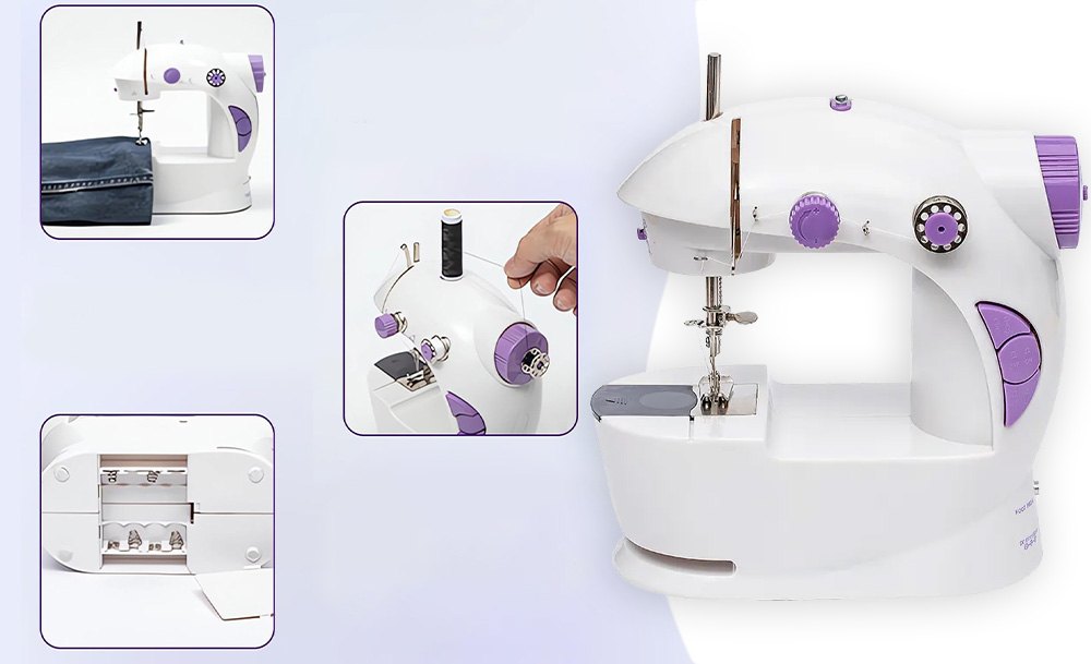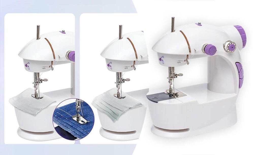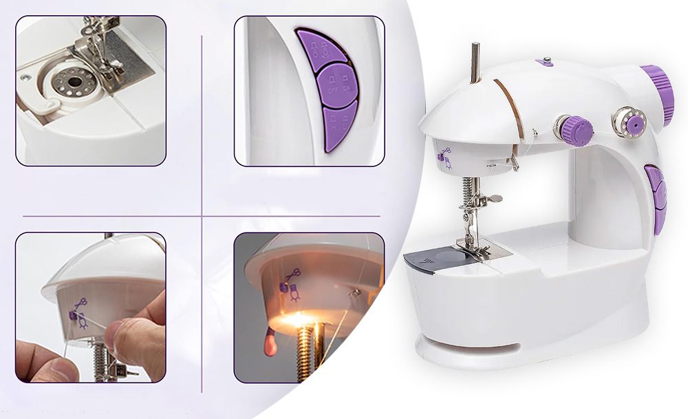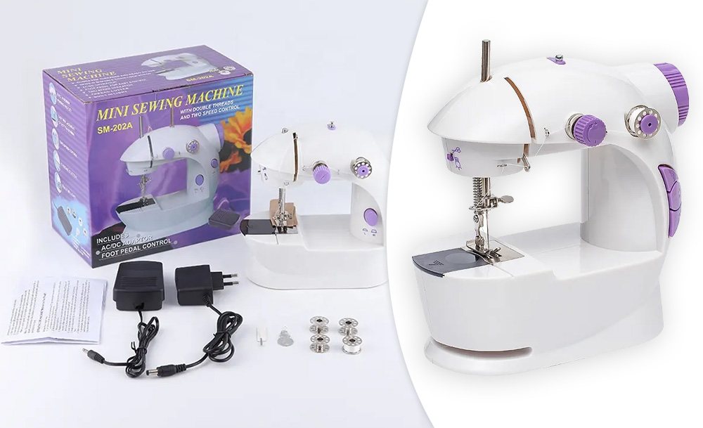 Мінішвейна машина 4 в 1 — це компактна мінішвейна машинка, яка завжди буде під рукою. Навіть якщо Ви абсолютний новачок у шитті, Ви легко впораєтеся за допомогою цієї портативної машинки, адже нею можна керувати ножною педаллю — має два швидкісні режими (повільно та швидко).