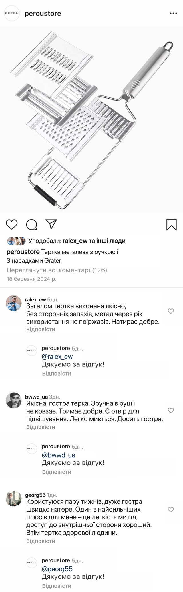 Тертка кухонна з ручкою — призначена для подрібнення різних продуктів — овочів, сиру, шоколаду тощо. Виготовлена повністю з неіржавкої сталі — це гарантує якість і довговічність продукту. Зручна ергономічна ручка натирайте потрібні продукти прямо в страву або в ємність.