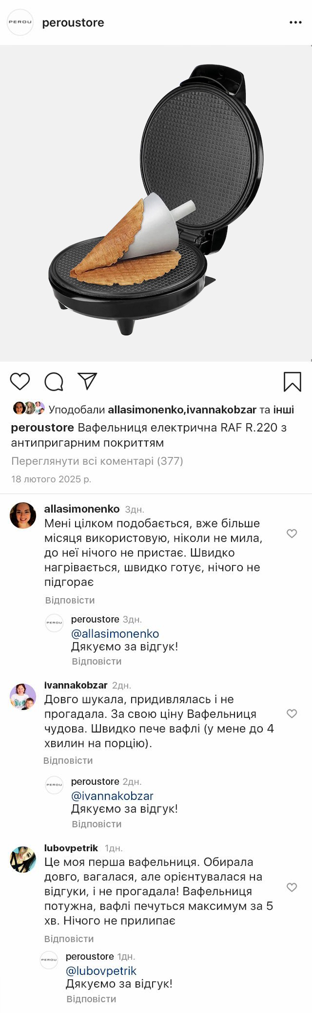 Електрична вафельниця RAF-220 призначена для приготування круглих і хрустких вафель, які можна загорнути в трубочки і наповнити фруктовою або кремовою начинкою. Рівномірний розподіл температури та антипригарне покриття робочих пластин забезпечують високу якість смаження вафлів з обох боків.
