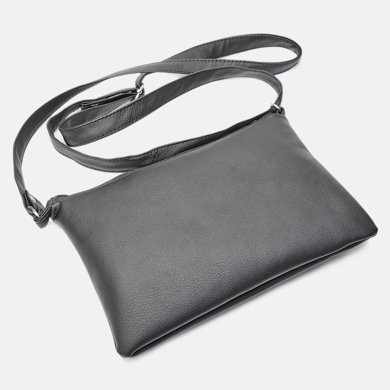 Сумка виконана з м’якої екошкіри, якісна і приємна на дотик, забезпечена подовженим ремінцем, що дає можливість зручно носити її як у руці, так і через плече. Мінімалізм та вишуканість модниці – ось образ, який створює ця сумка.