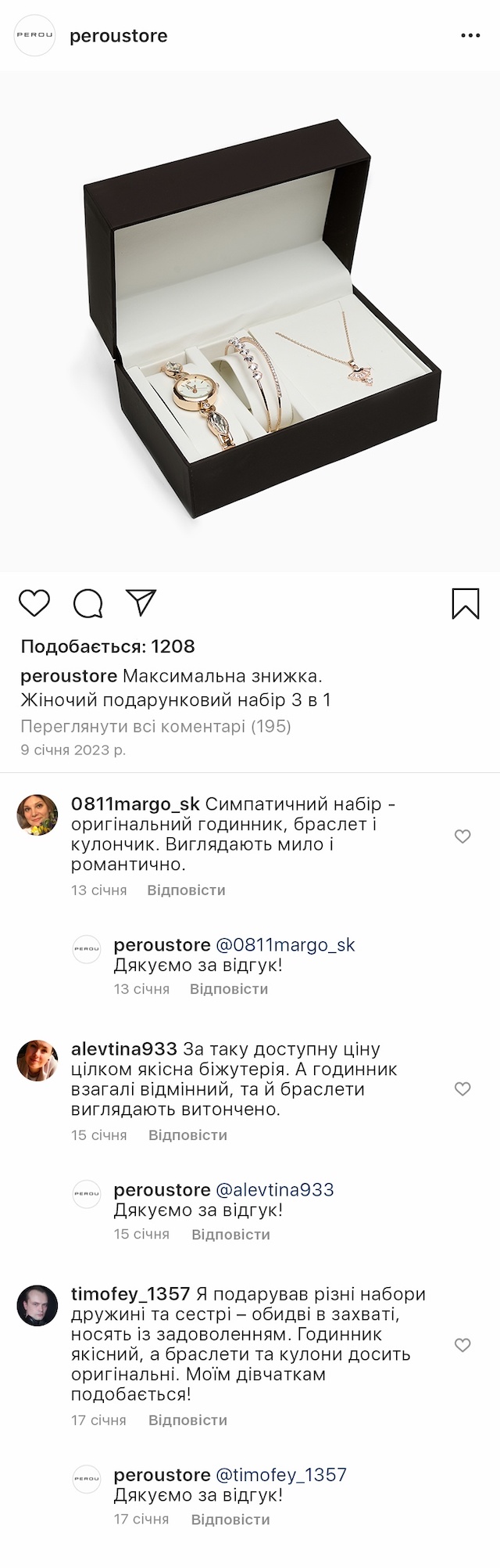 Жіночий подарунковий набір представлений у різних варіантах – годинник, подвійний тонкий браслет та додатковий браслет або підвіска на ланцюжку. Невеликий годинник з білим циферблатом на оригінальному браслеті створить витончений образ своїй власниці.